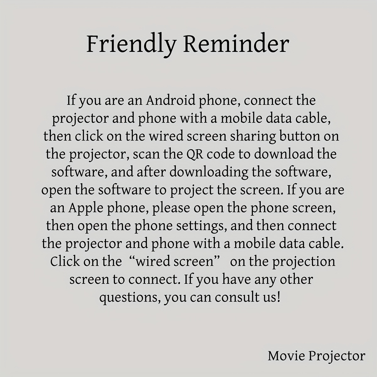 Mini Portable Projector, Movie Projector, Smart Projector, Ideal for Smartphones/Tablets/Laptops/TVs/USBs - Includes Remote Control, Suitable for Home Theater